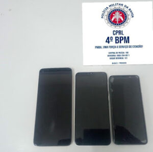 O terceiro aparelho identificado como roubado, estava com a namorada do abordado, a qual chegou no local, posteriormente. Dessa forma, o suspeito foi apresentado na Delegacia Territorial, onde foi preso em flagrante delito por receptação.