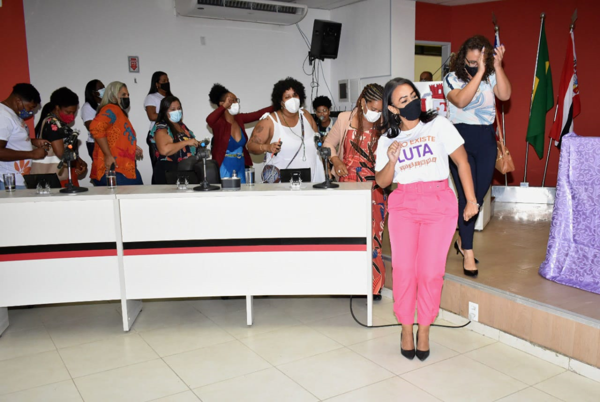 Compuseram a mesa, o presidente José Cleto e além das vereadoras Luma, Juci Cardoso e Jaldice Nunes, Patrícia Santana (Patrulha Maria da Penha), Renata Fortaleza (COMENDIM), Jamile Oliveira (Coordenação de Políticas Públicas para Mulheres), Helenira Meira (Chefe de Gabinete da Deputada Olívia Santana), Angélica Maria (vereadora de Pedrão), Juraneide Bispo (vereadora de Araçás), Dalvan Almeida (vereador de Araçás), Laína Crisóstomo (vereadora de Salvador), Capitã Iara PM, Ludmila Fiscina (SEMAS), Dida Uzeda (vereadora de Teodoro Sampaio) e Isabela Conde, ativista pelos direitos das mulheres.